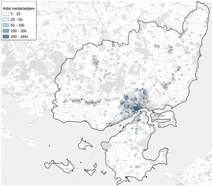 Figuren nedenfor viser hvordan arbejdspladserne i Svendborg kommune er fordelt.