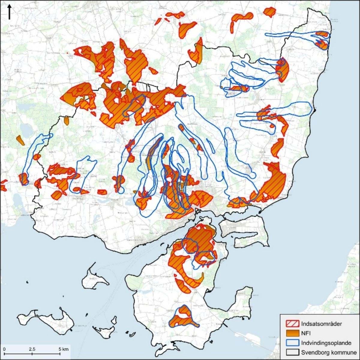 De udpegede NFI-områder fremgår af figur 2. Der er især udlagt NFI-områder ved Vindeby i Svendborg by og sydøst for byen samt nordøst for Stenstrup.