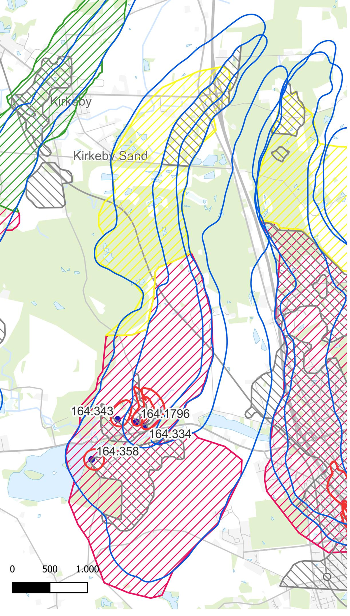 Kortlægningen skal ikke udføres indenfor byzone, medmindre forekomsten af den begravede dal mellem Hvidkilde og Svendborg skal undersøges nærmere.
