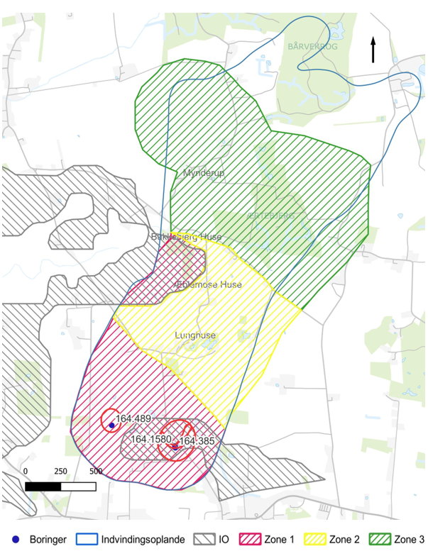 Der er med udgangspunkt i grundvandsdannelsen, herunder transporttid og SGO udpeget 3 prioriterede zoner.