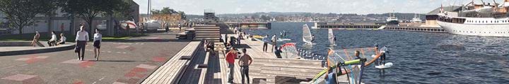 I 2018 er der blevet afviklet en arkitektkonkurrence for ”Den blå Kant”. Vinderprojektet vil blive realiseret over de næste år - og vil synliggøre, hvordan den maritime kulturarv bevares og bindes sammen med byen, samtidig med at området klimasikres.